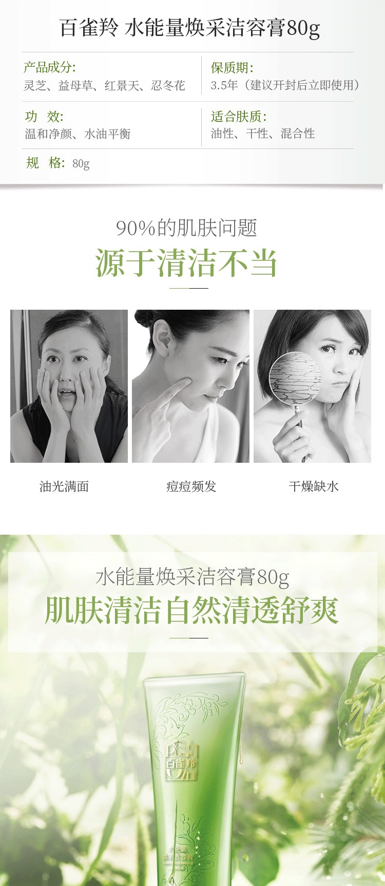 商品名称:PECHOIN/百雀羚水能量焕采洁面膏80g