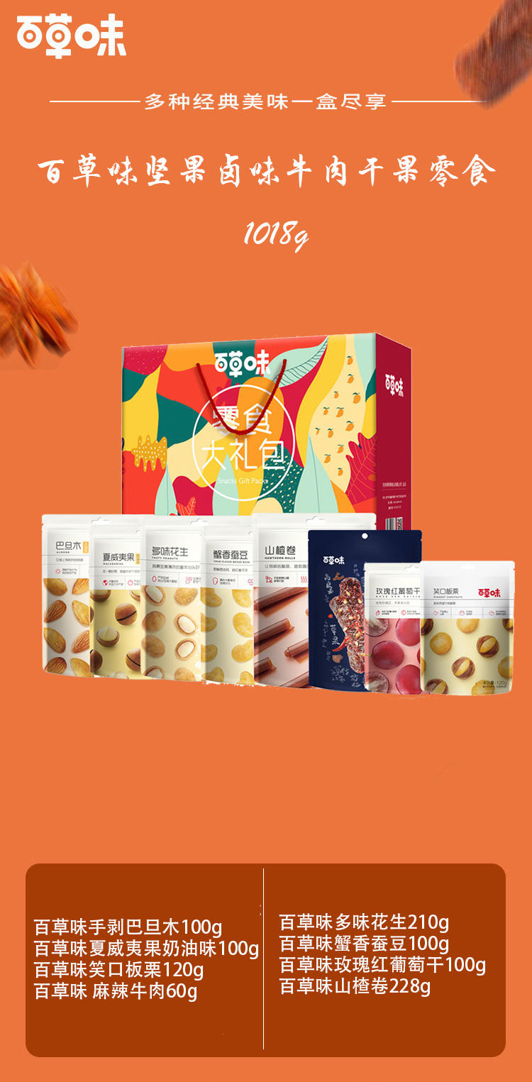 商品名称:百草味坚果卤味牛肉干果零食礼盒1018g