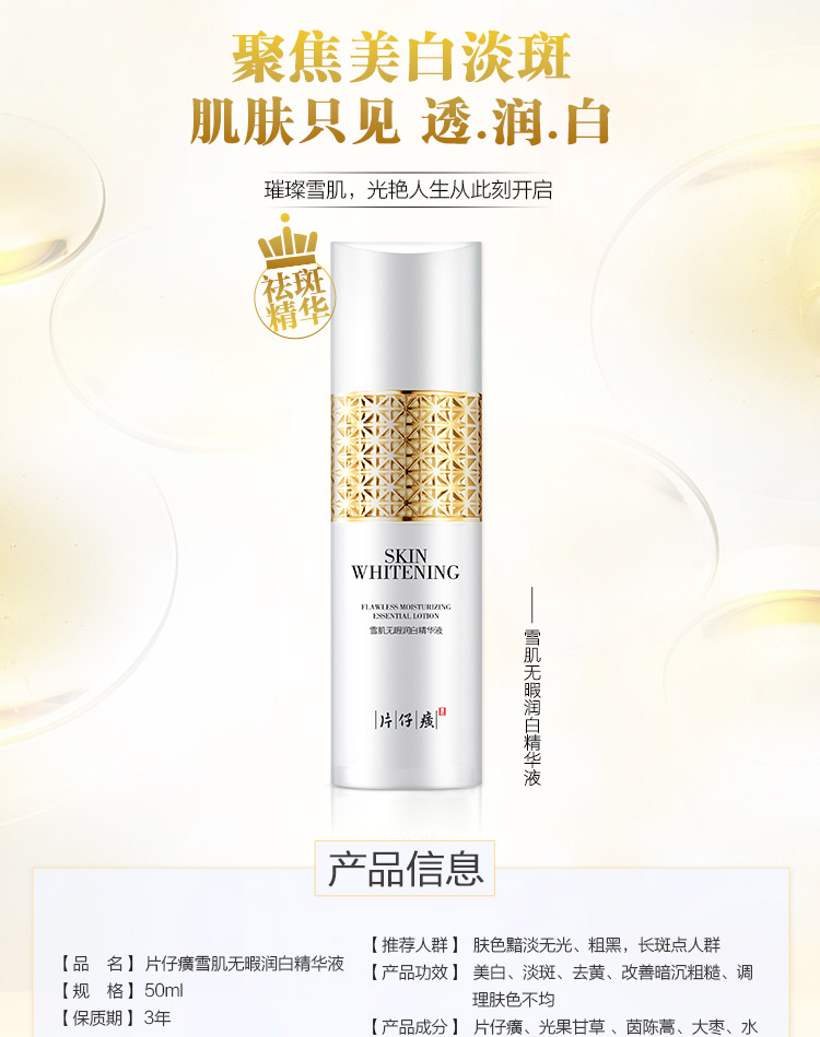 商品名称:片仔癀雪肌无暇润白精华液50ml