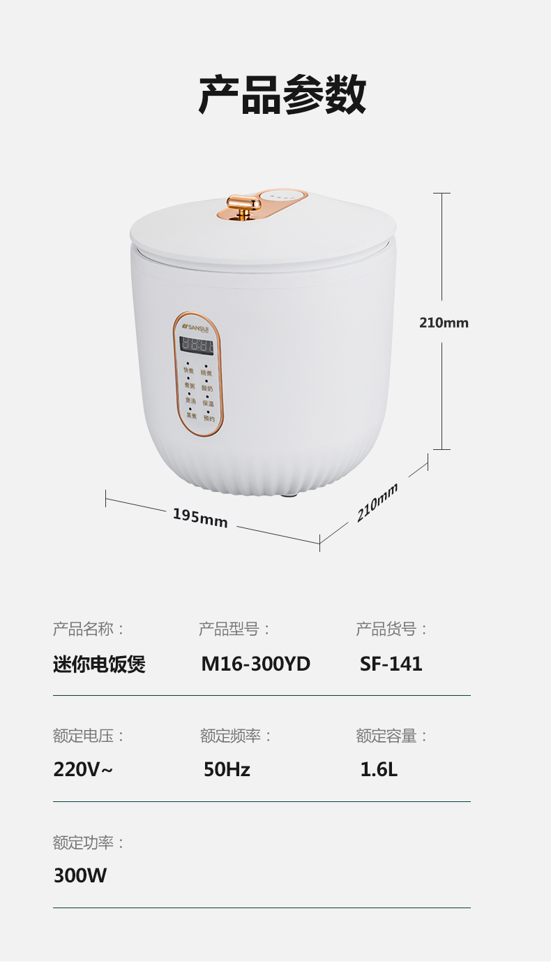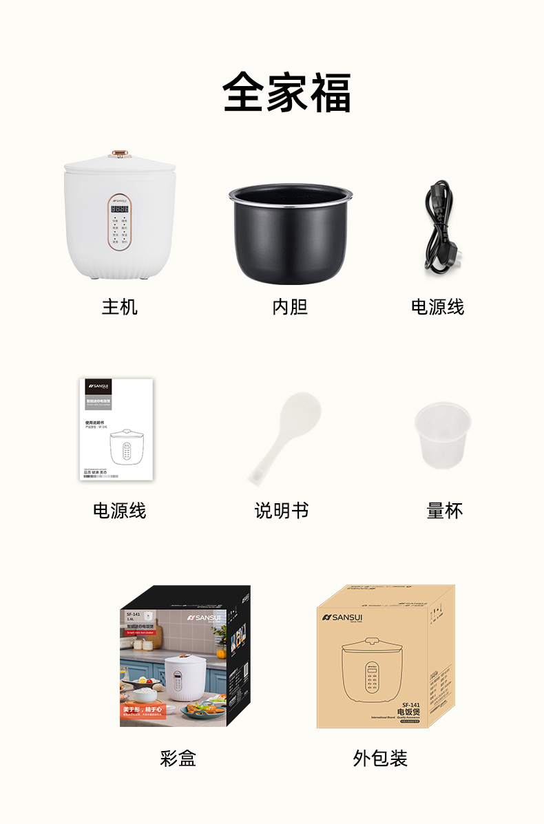 商品名称:SANSUI/山水1.6升智能电饭煲SF-141