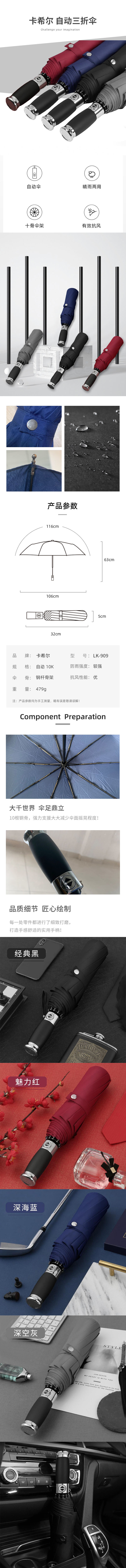 商品名称:Kaxir/卡希尔自动三折雨伞LK-909