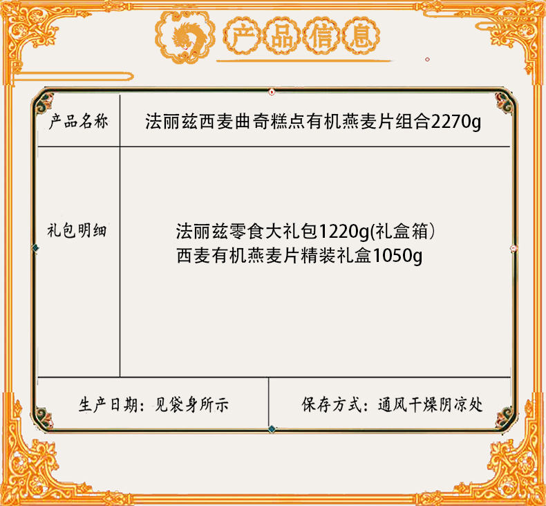商品名称:法丽兹西麦曲奇糕点有机燕麦片组合2270g