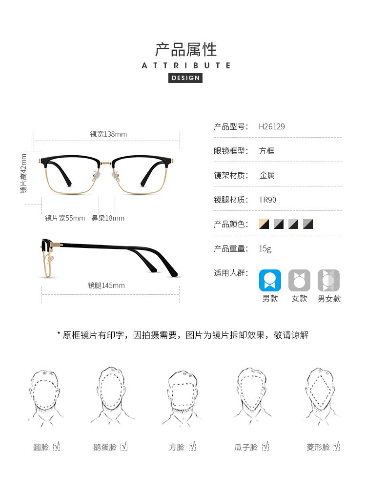 海伦凯勒商务男士光眼镜简约方框近视眼镜框架 230107