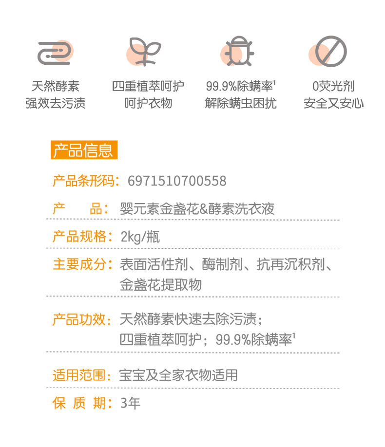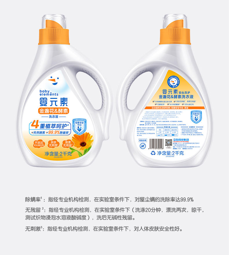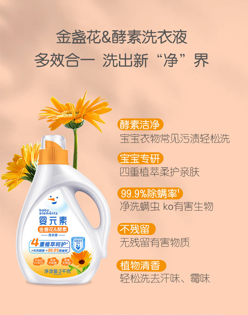 商品名称:baby elements/婴元素金盏花&酵素洗衣液2kg