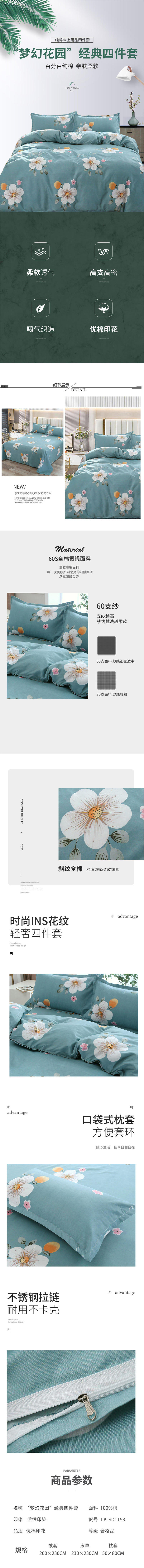 商品名称:Kaxir/卡希尔梦幻花园经典纯棉床品四件套200*230cm