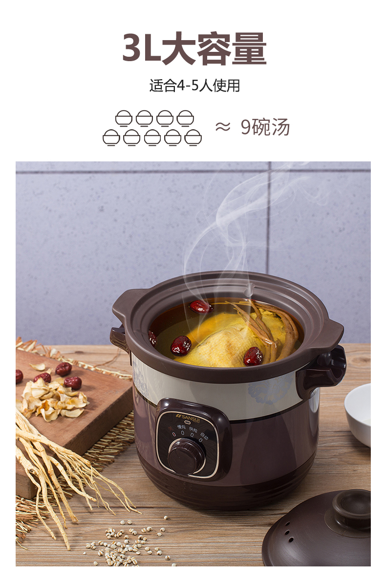 商品名称:SANSUI/山水3升机械款紫砂电炖锅SDZ-B1