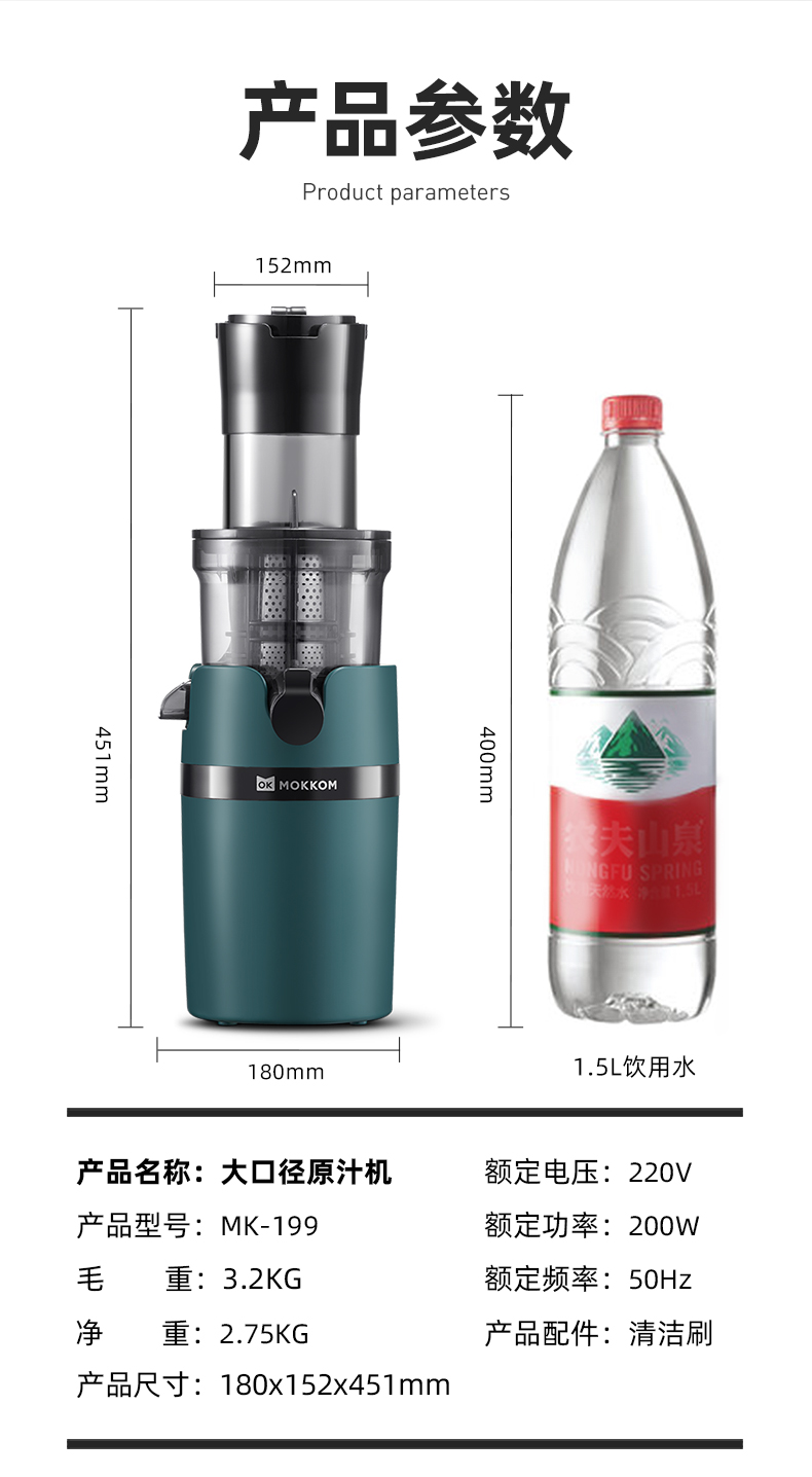 商品名称:MOKKOM/磨客大口径原汁机MK-199