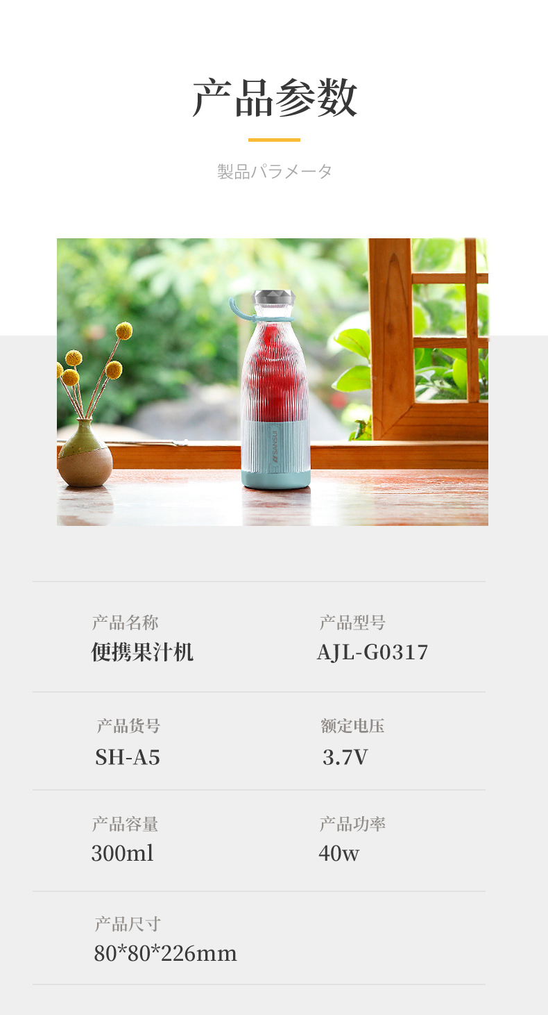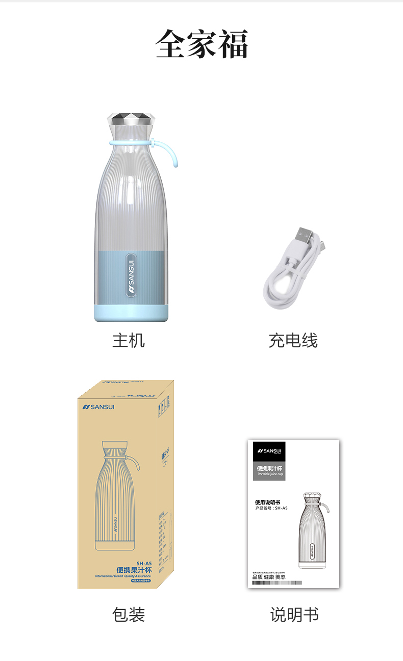 商品名称:SANSUI/山水300毫升便携果汁机SH-A5