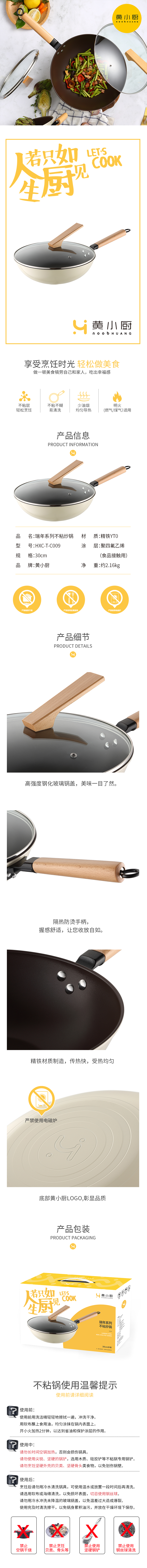 商品名称:黄小厨30cm瑞年系列不粘炒锅HXC-T-C009