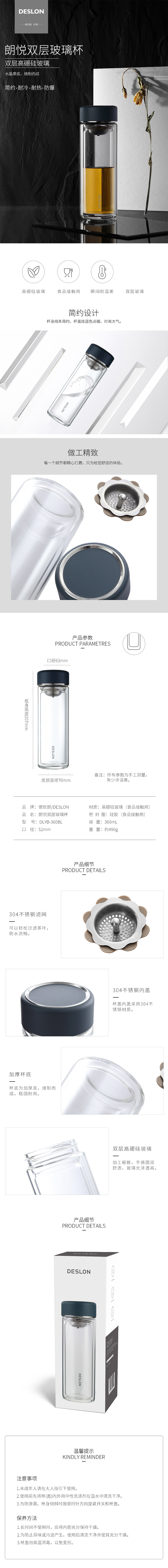 商品名称:DESLON/德世朗360毫升朗悦双层玻璃杯DLYB-360BL