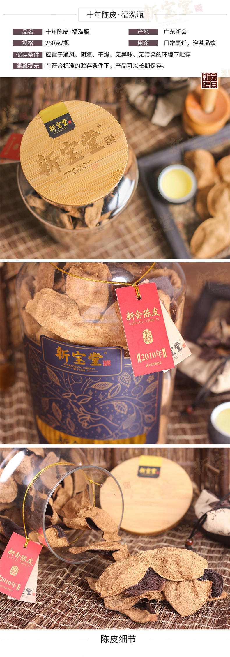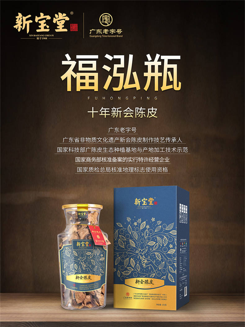 商品名称:新宝堂十年陈皮福泓瓶装250g