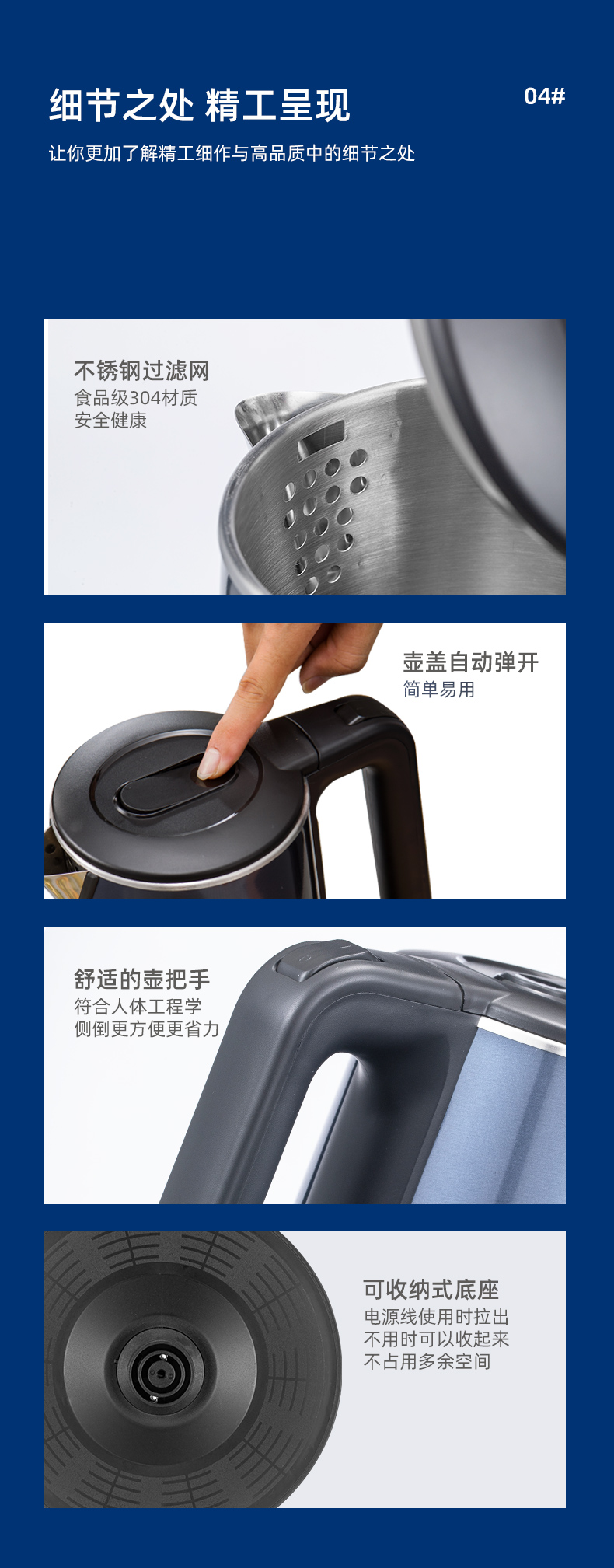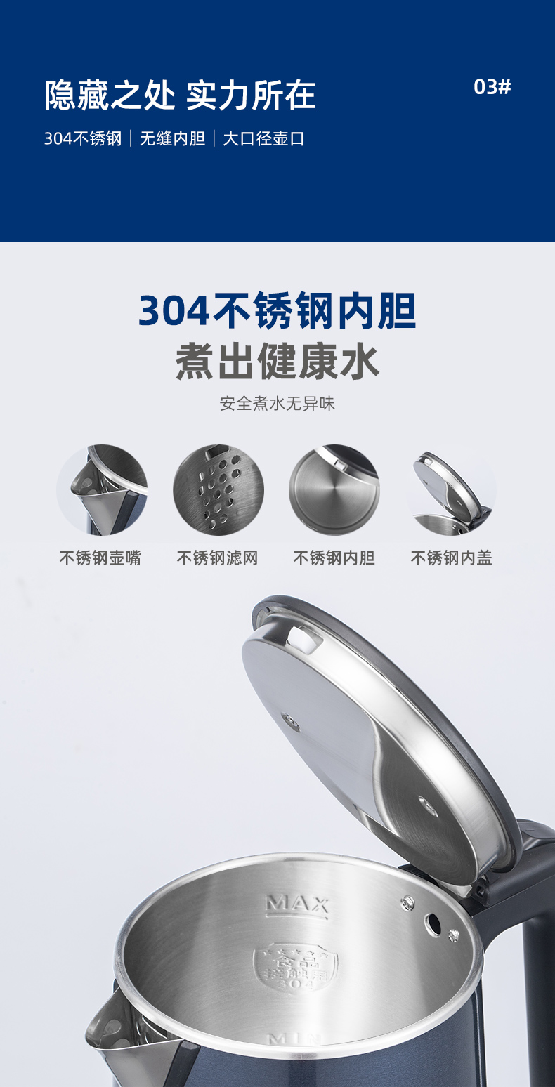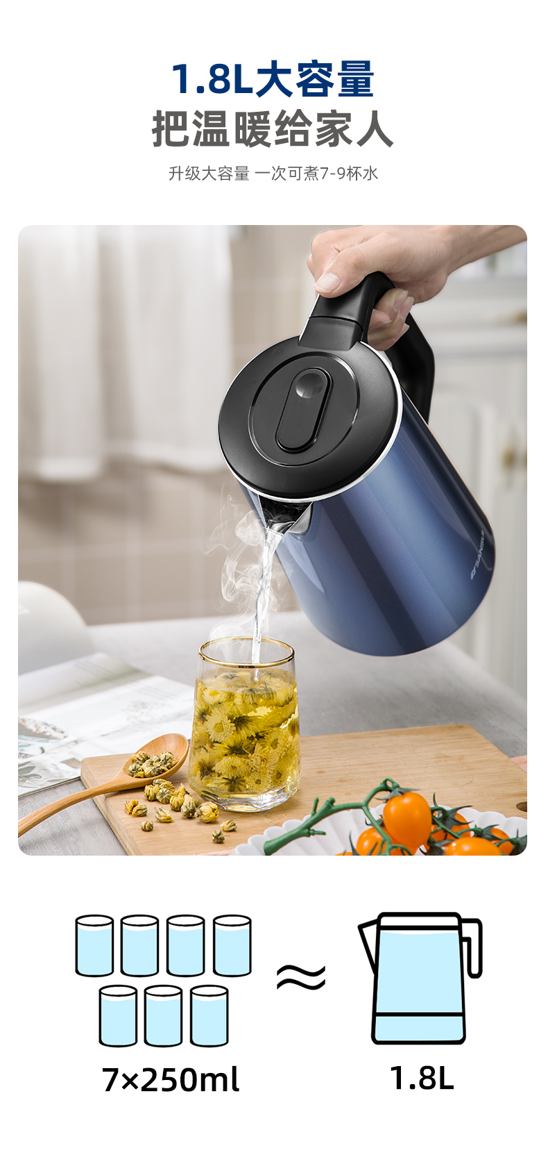 商品名称:SANSUI/山水1.8升电热水壶-经典蓝YY-18B33