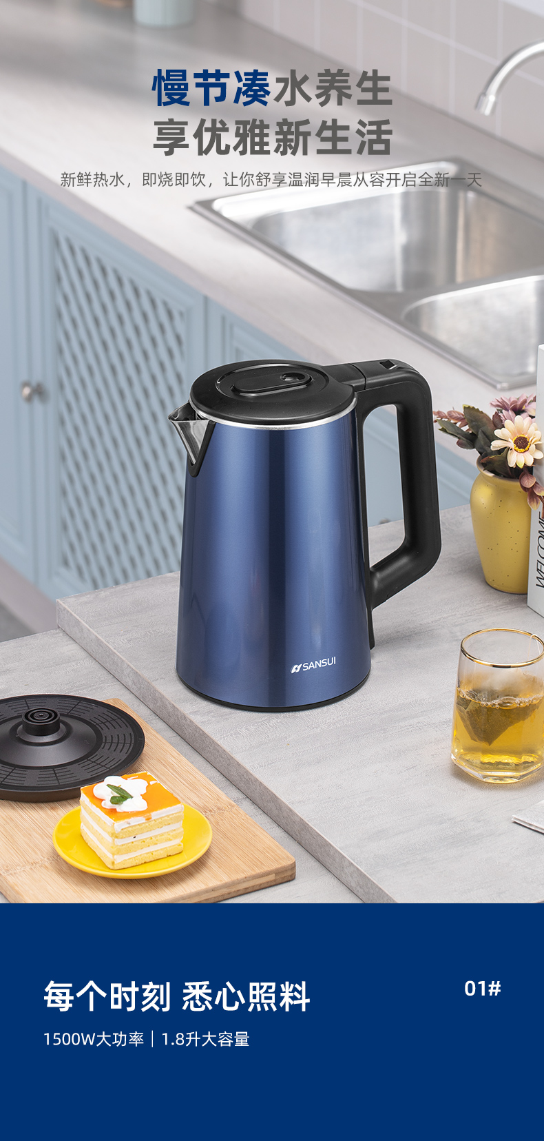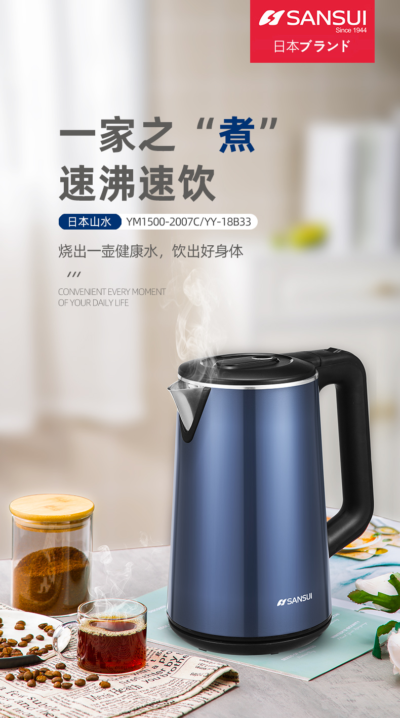 SANSUI/山水1.8升电热水壶-经典蓝YY-18B33