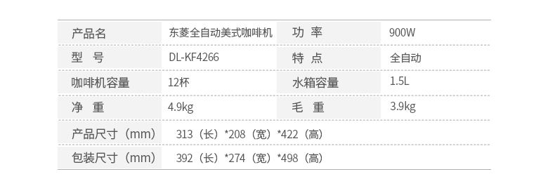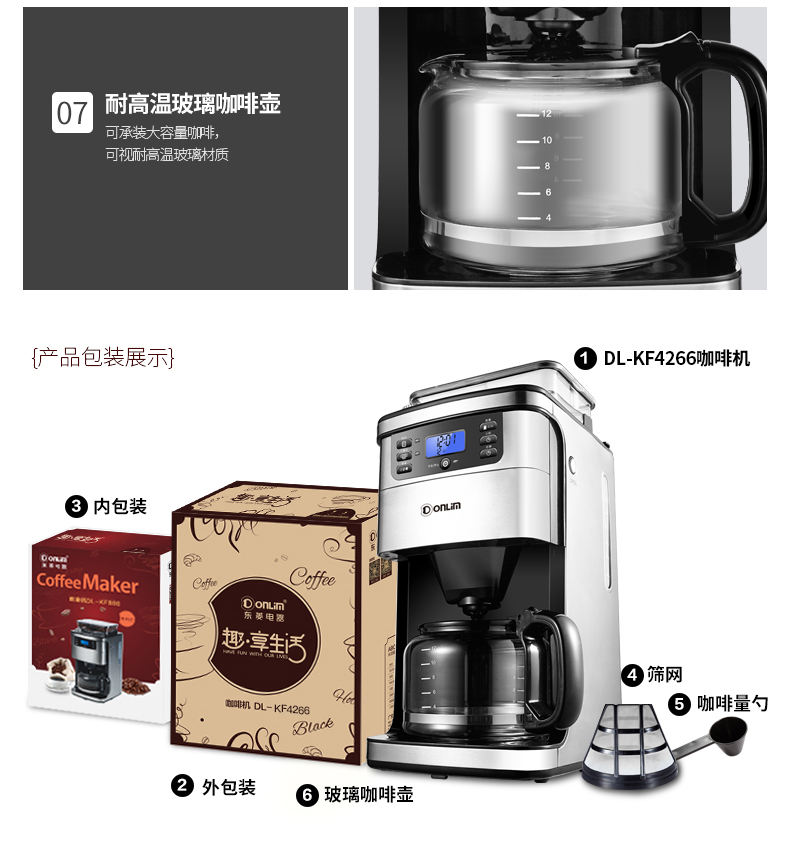 商品名称:Donlim/东菱全自动美式咖啡机DL-KF4266