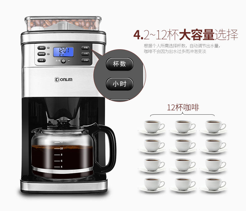 Donlim/东菱全自动美式咖啡机DL-KF4266
