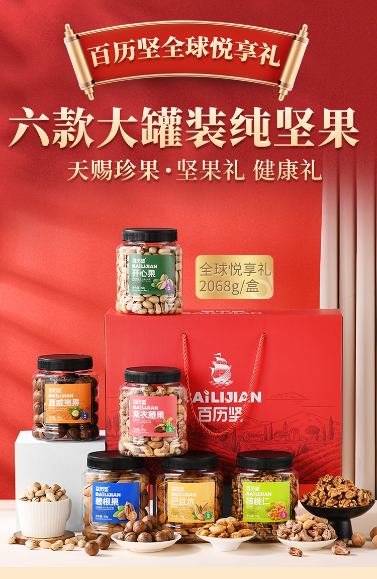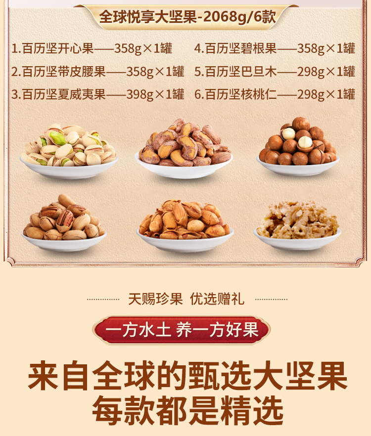 商品名称:【京东配送】百历坚全球悦享纯坚果礼盒2068g