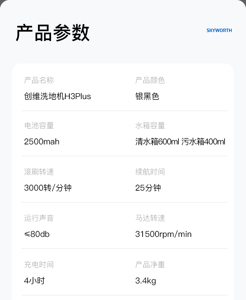 商品名称:(爆品推荐)创维郝阿姨H3plus洗地机