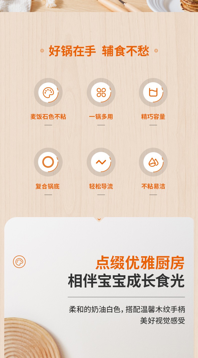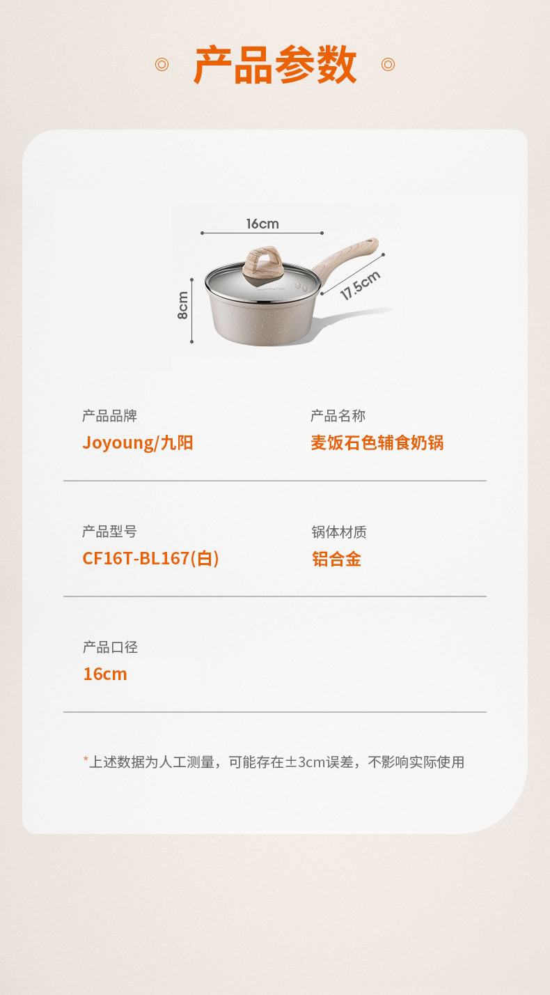 商品名称:Joyoung/九阳16cm麦饭石色辅食奶锅CF16T-BL167