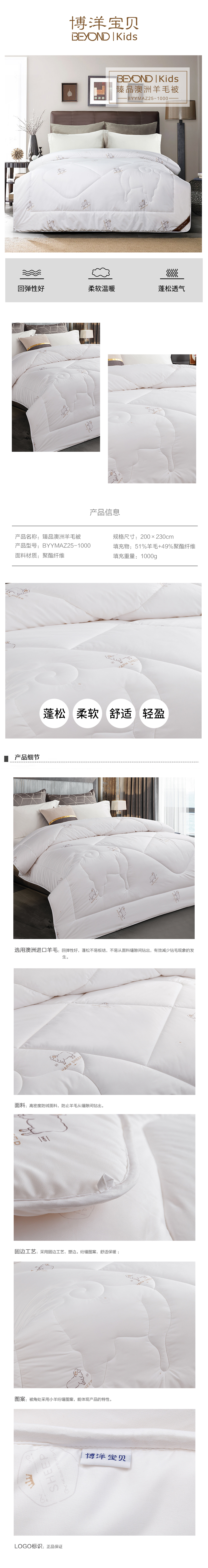 Beyond kids/博洋宝贝臻品澳洲羊毛被200*230cm 1000g