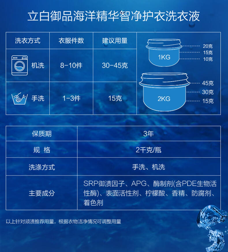商品名称:Liby/立白御品海洋精华智净护衣洗衣液2kg