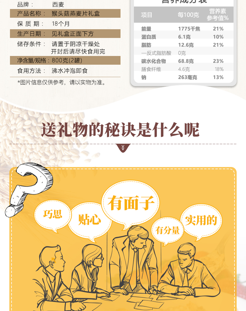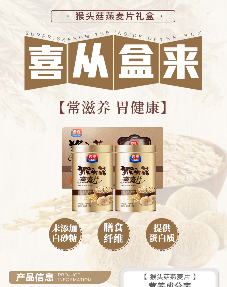 商品名称:SEAMILD/西麦猴头菇燕麦片礼盒800g