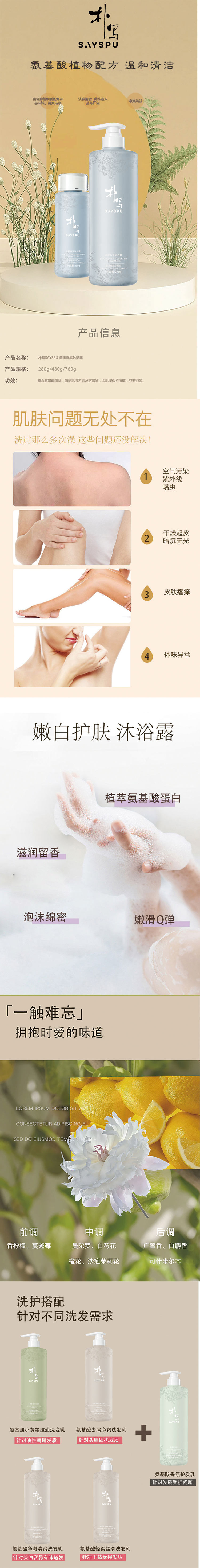 SAYSPU/朴写美肌香氛沐浴露760g