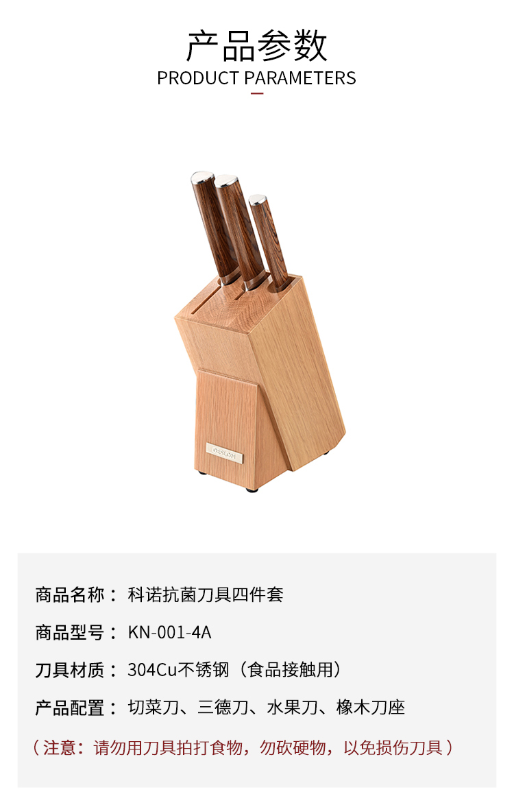 商品名称:DESLON/德世朗科诺抗菌刀具四件套KN-001-4A