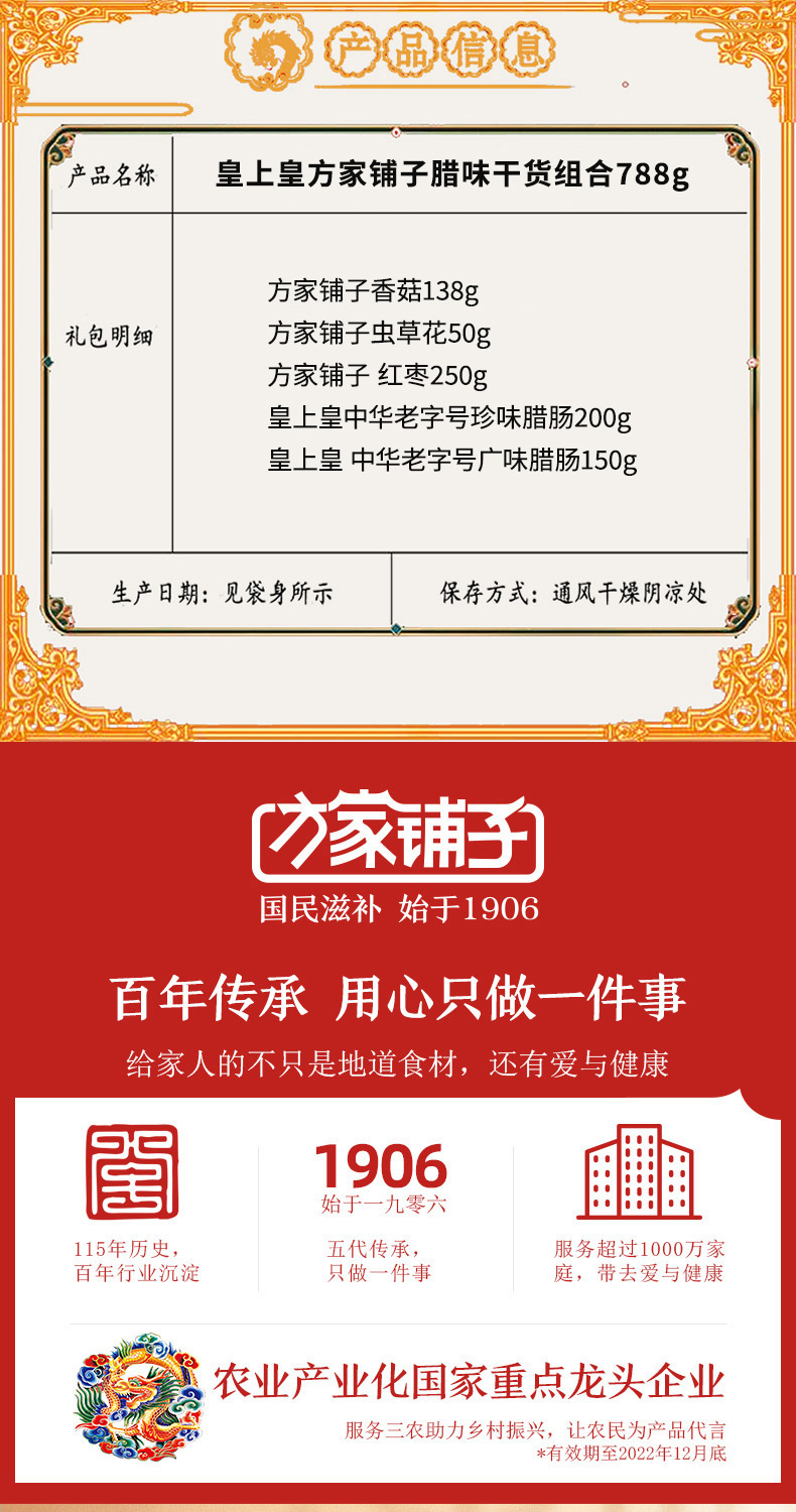 商品名称:皇上皇方家铺子腊味干货组合788g