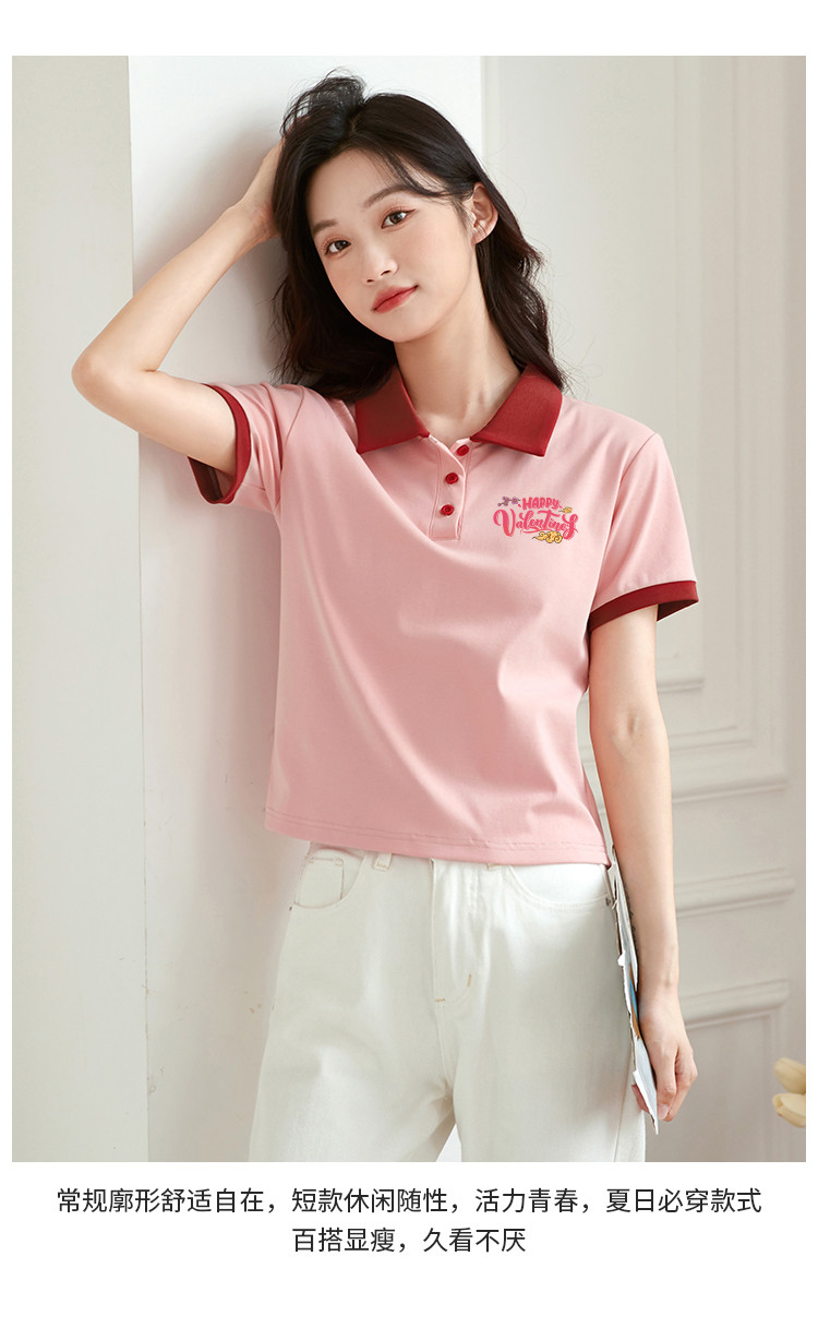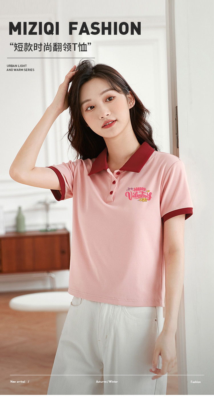 商品名称:米子旗夏季polo领女式T恤字母印花洋气短袖休闲上衣 749338