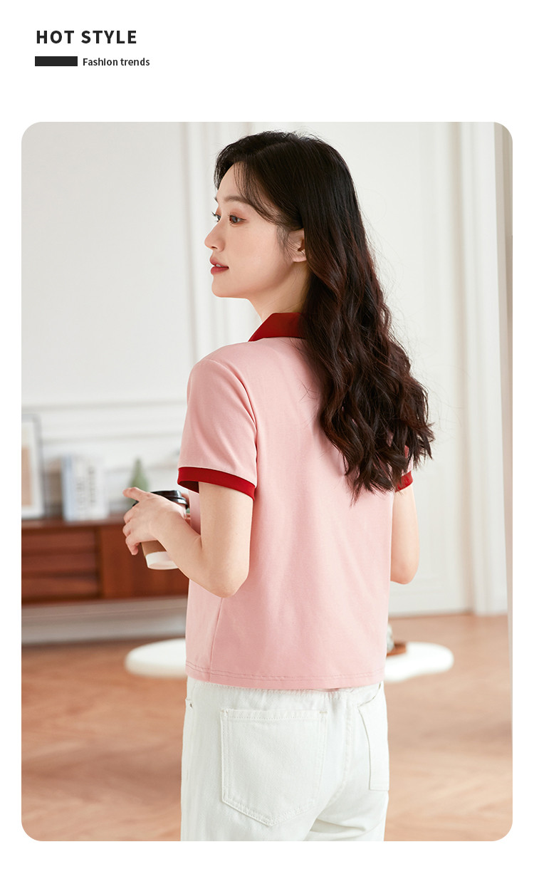 米子旗夏季polo领女式T恤字母印花洋气短袖休闲上衣 749338