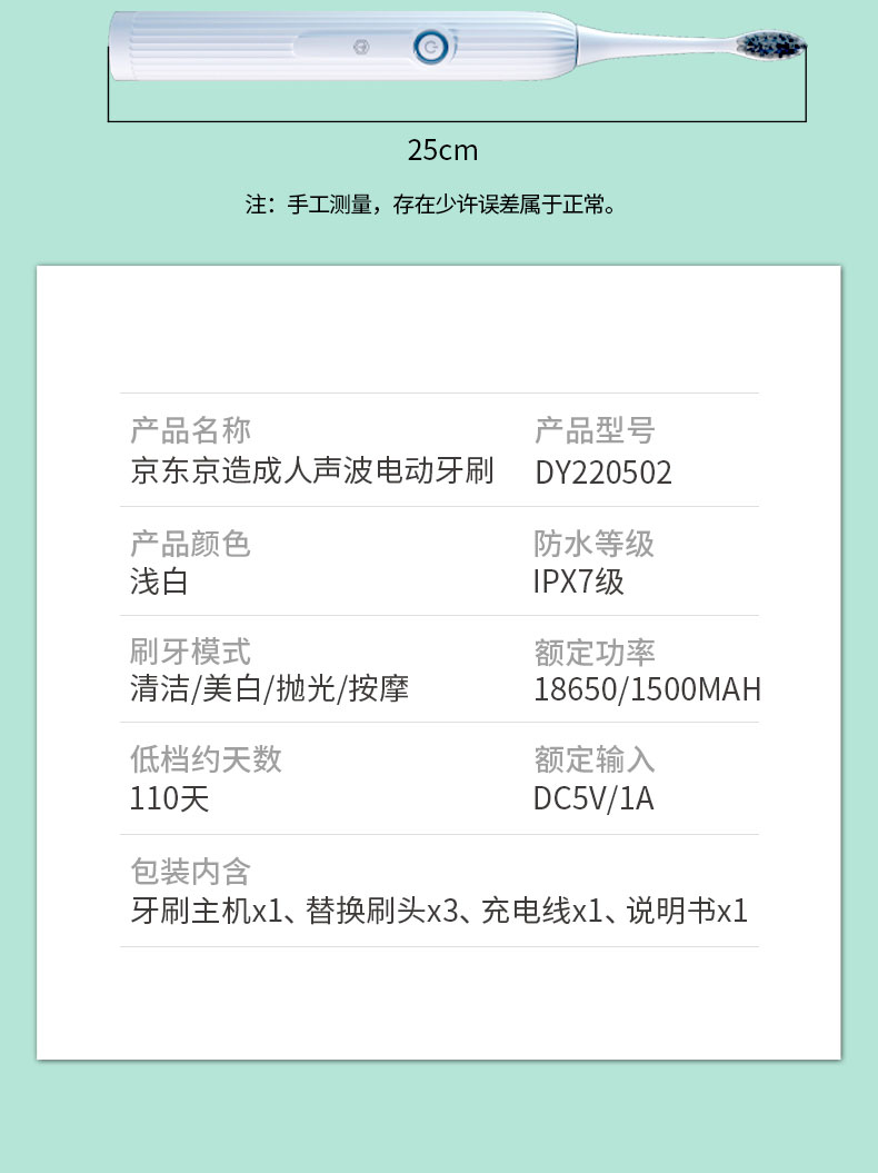 商品名称:京东京造成人声波电动牙刷-浅白DY220502