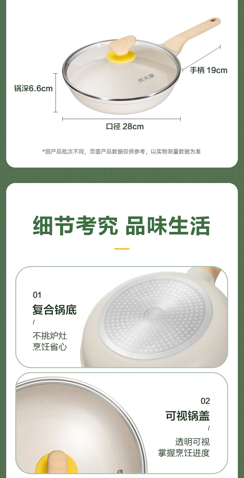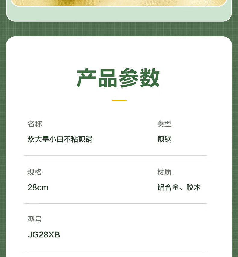 商品名称:COOKERKING/炊大皇28cm小白不粘煎锅JG28XB