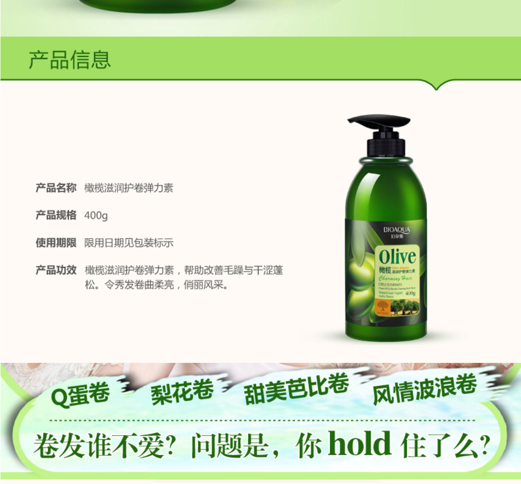 商品名称:泊泉雅橄榄滋润护卷弹力素 柔顺亮泽 400g