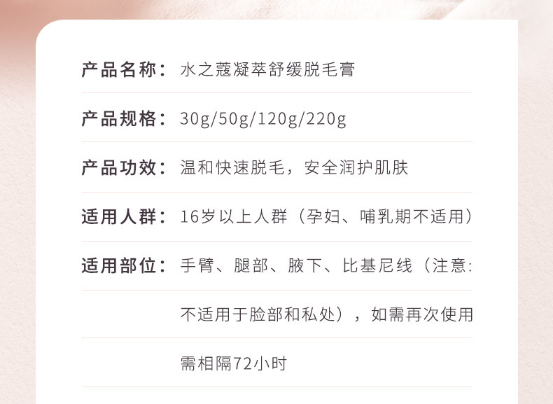 商品名称:WATERCOME/水之蔻脱毛膏220g