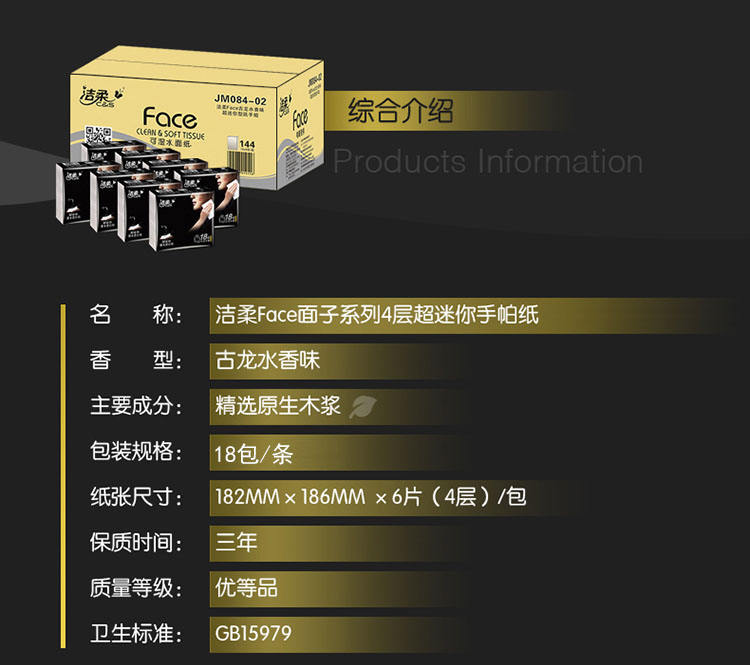 商品名称:C&S/洁柔Face面子系列4层超迷你手帕纸6片18包*3条 超迷你型