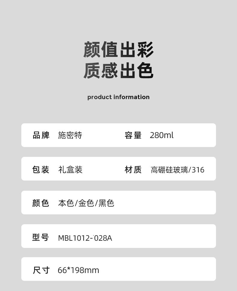 商品名称:simita/施密特280毫升玻璃杯MBL1012-028A