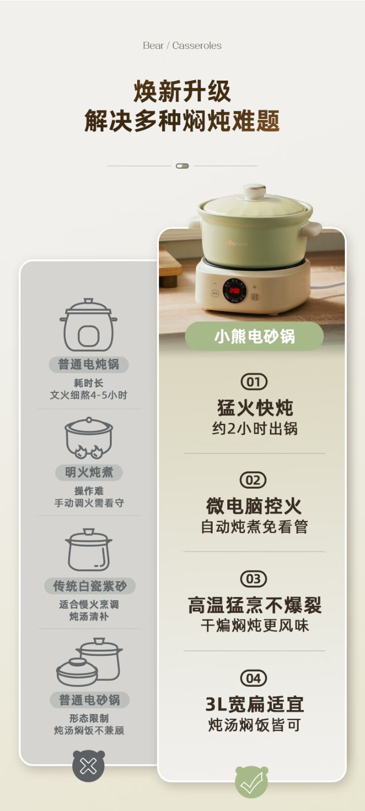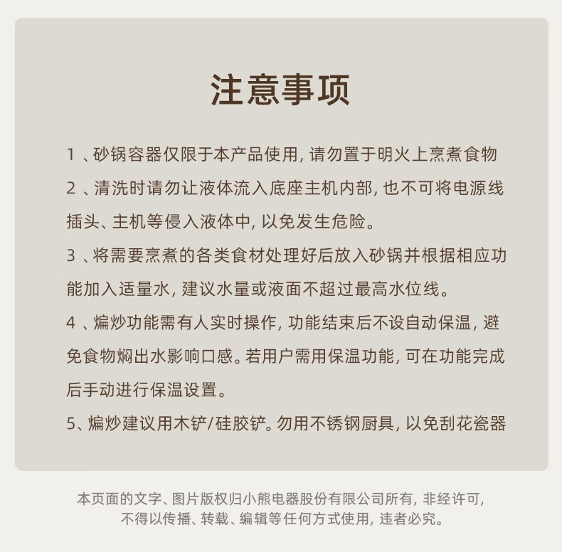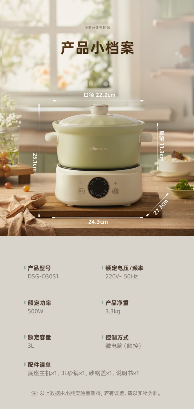 商品名称:Bear/小熊3升电砂锅DSG-D30S1
