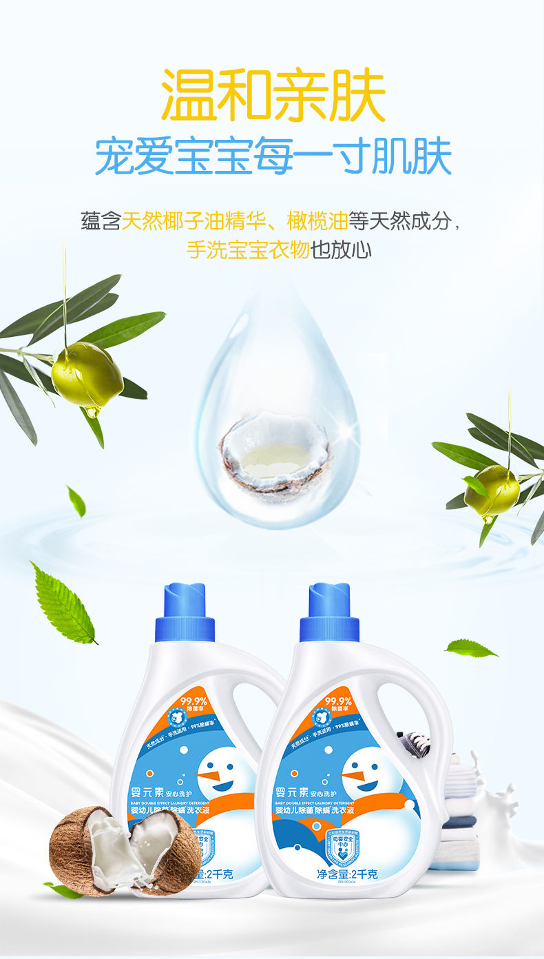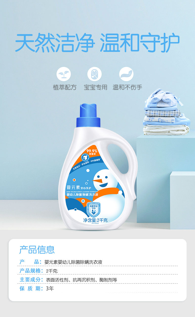 商品名称:baby elements/婴元素婴幼儿除菌除螨洗衣液2kg