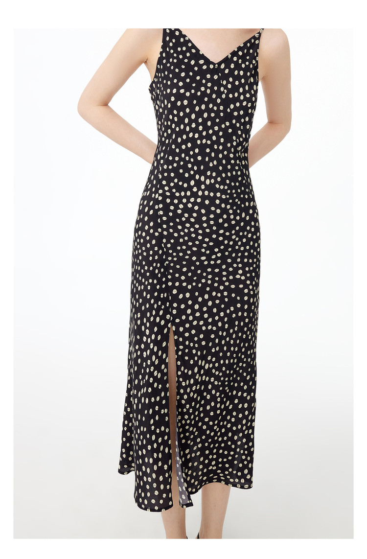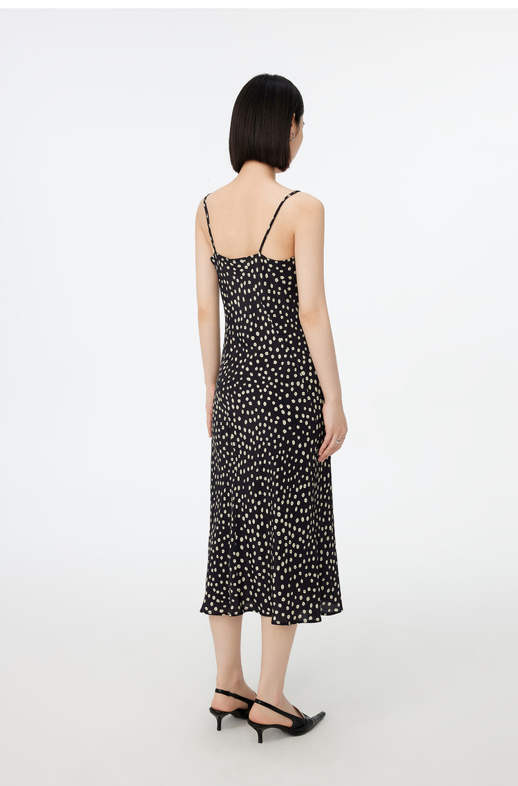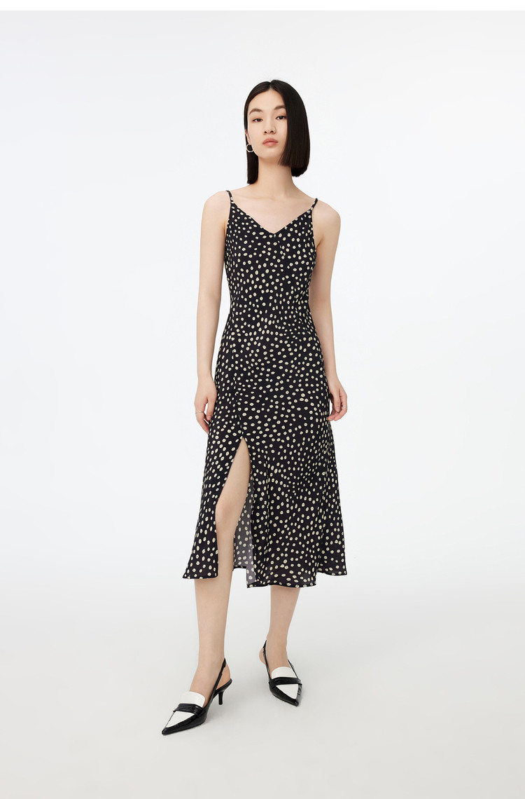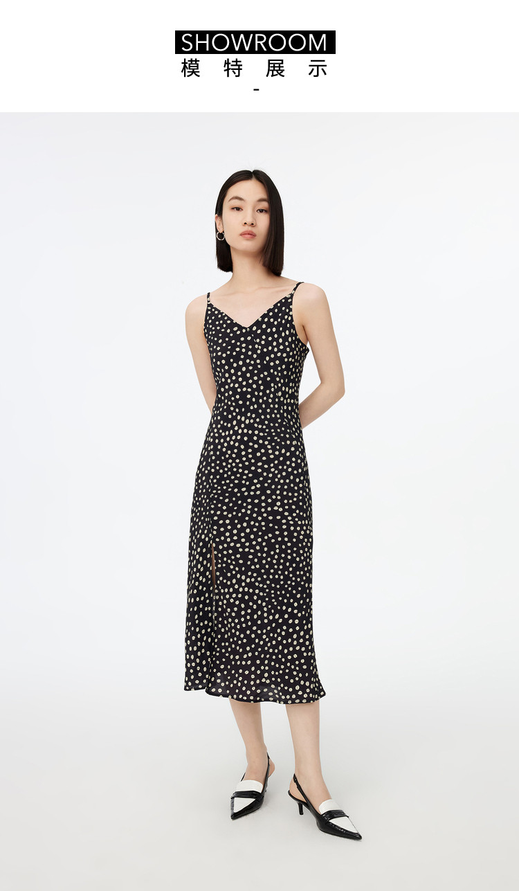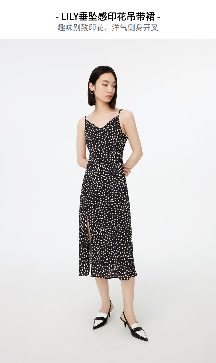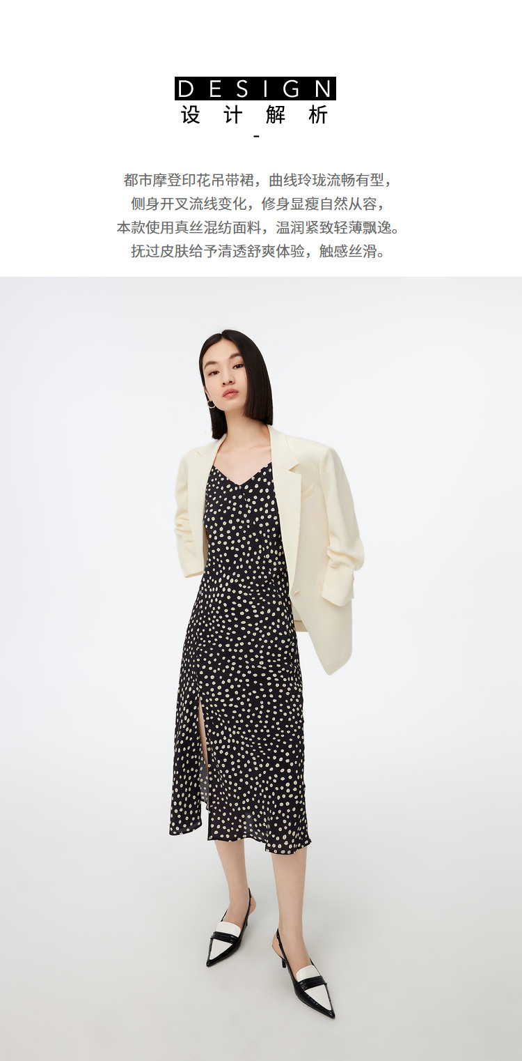 商品名称:春季垂坠感含真丝都市通勤印花洋气开叉吊带连衣裙 869467