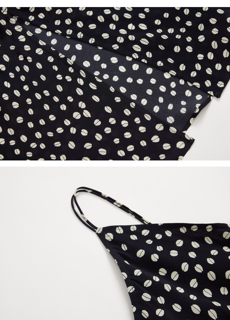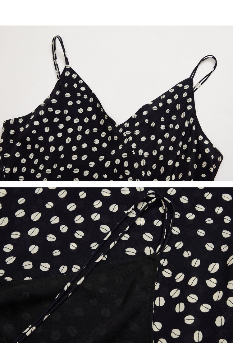 春季垂坠感含真丝都市通勤印花洋气开叉吊带连衣裙 869467