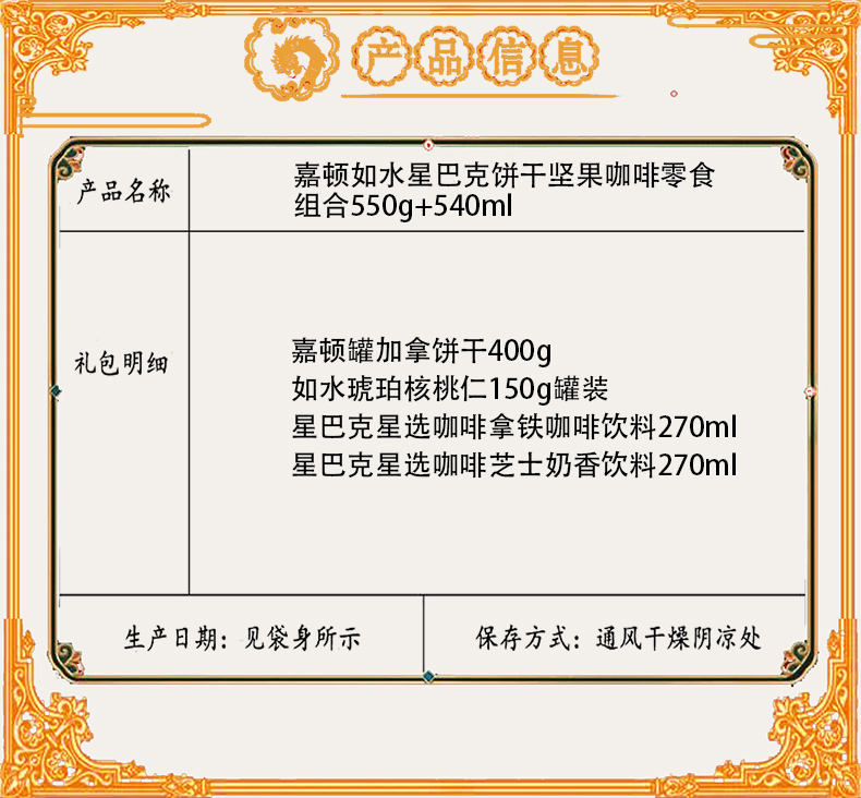 商品名称:嘉顿如水星巴克饼干坚果咖啡零食组合550g+540ml