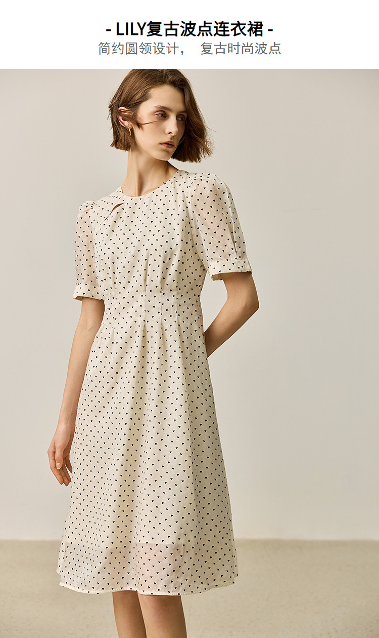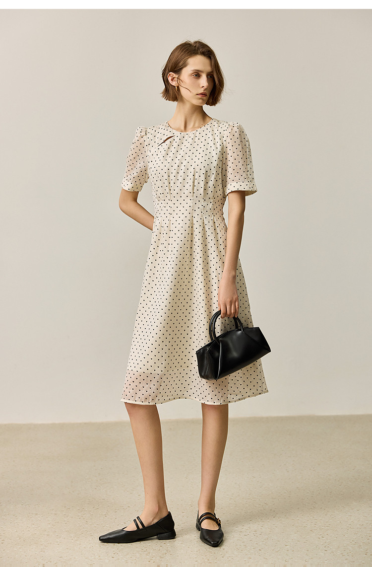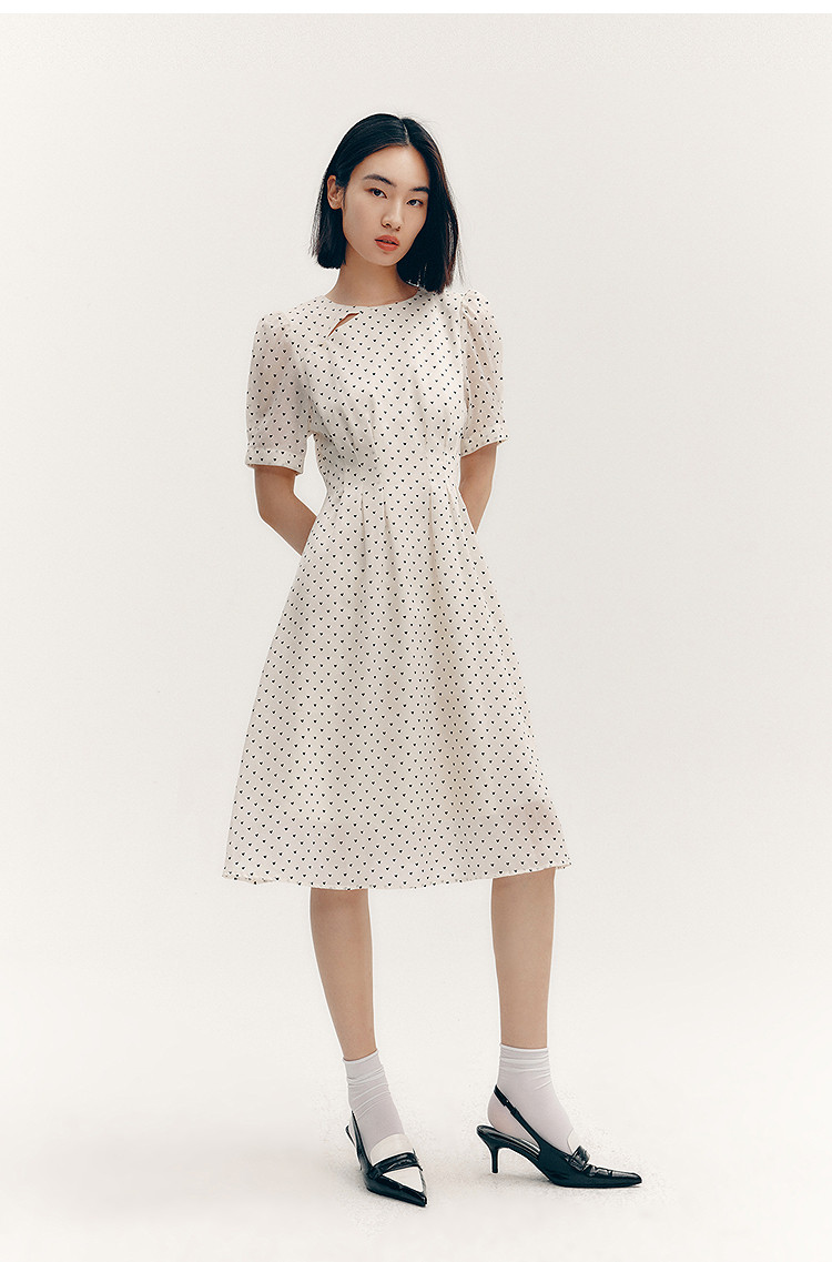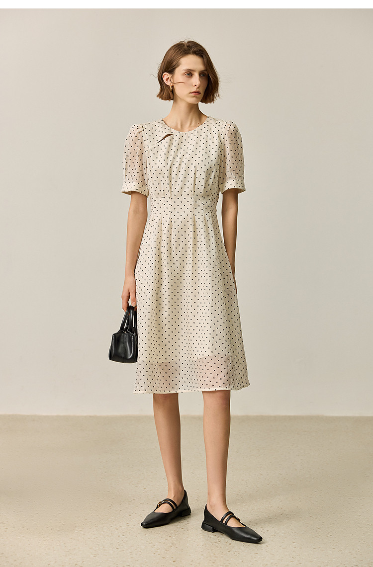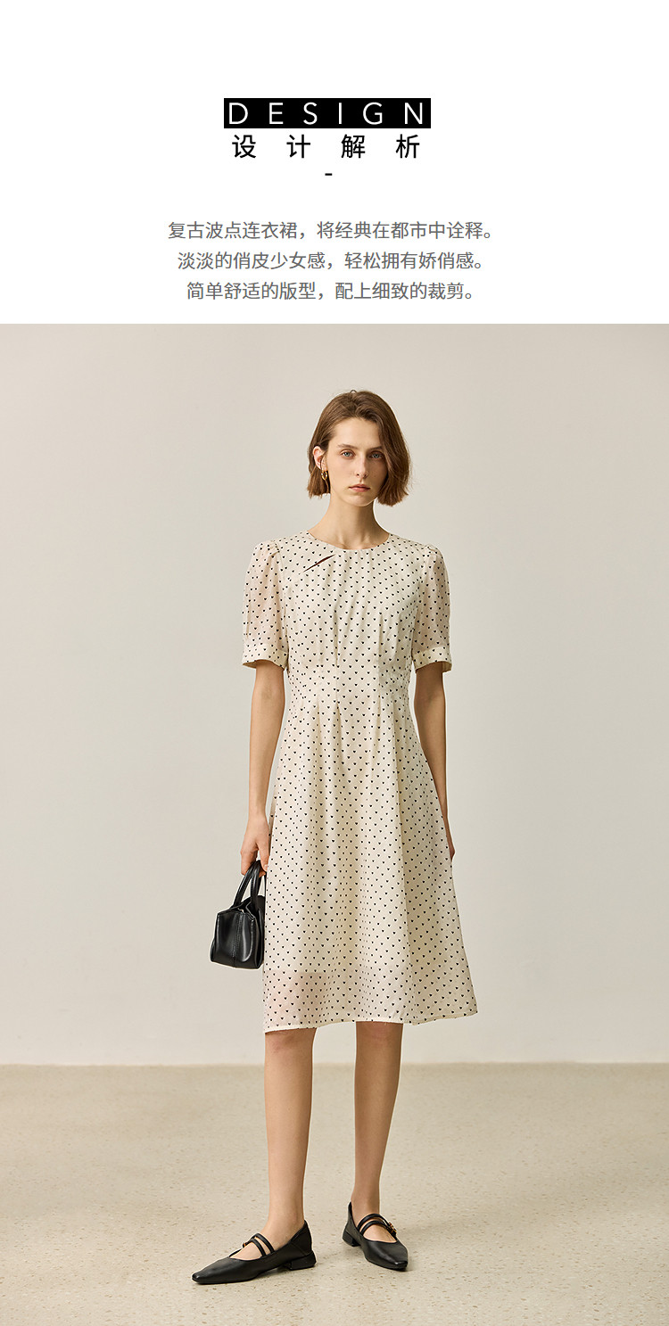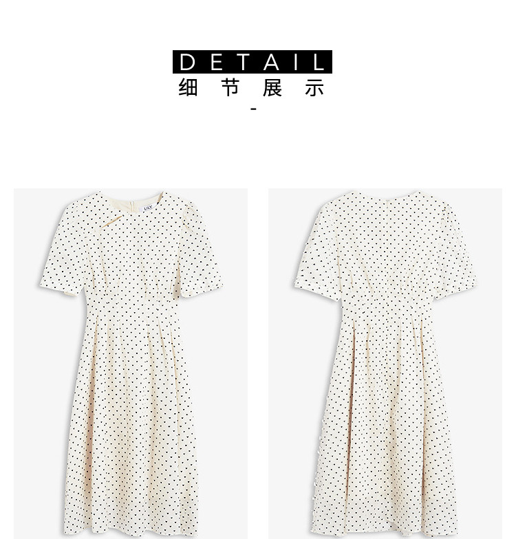 商品名称:【春季款】时尚复古波点气质纯色俏皮短袖显瘦高腰连衣裙 690139