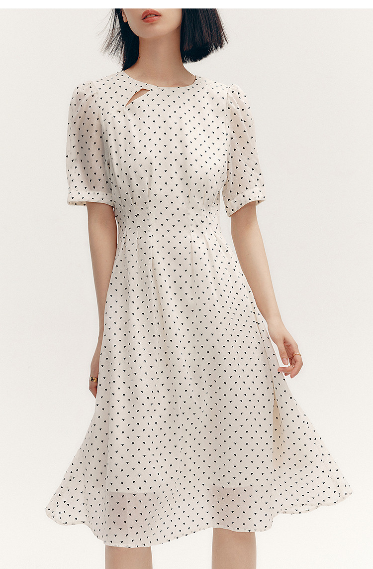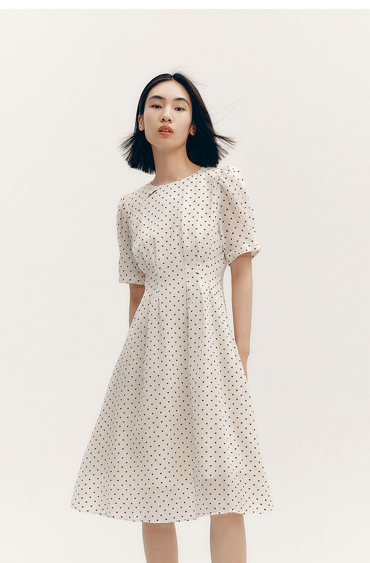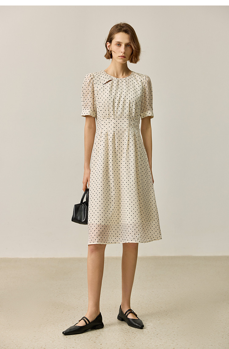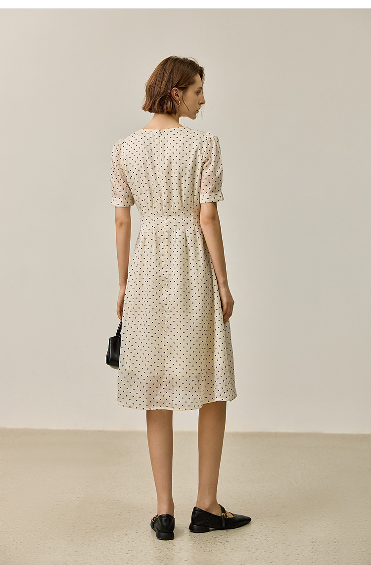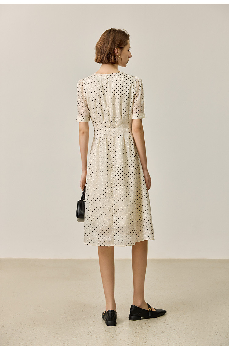 商品名称:【春季款】时尚复古波点气质纯色俏皮短袖显瘦高腰连衣裙 690139