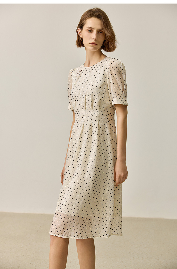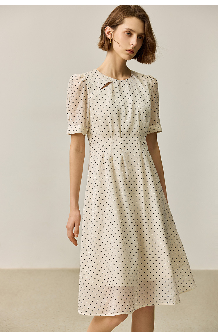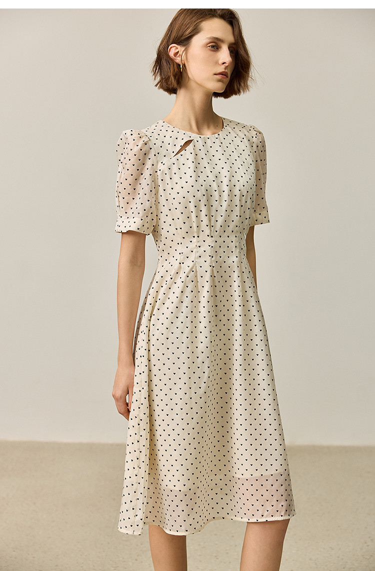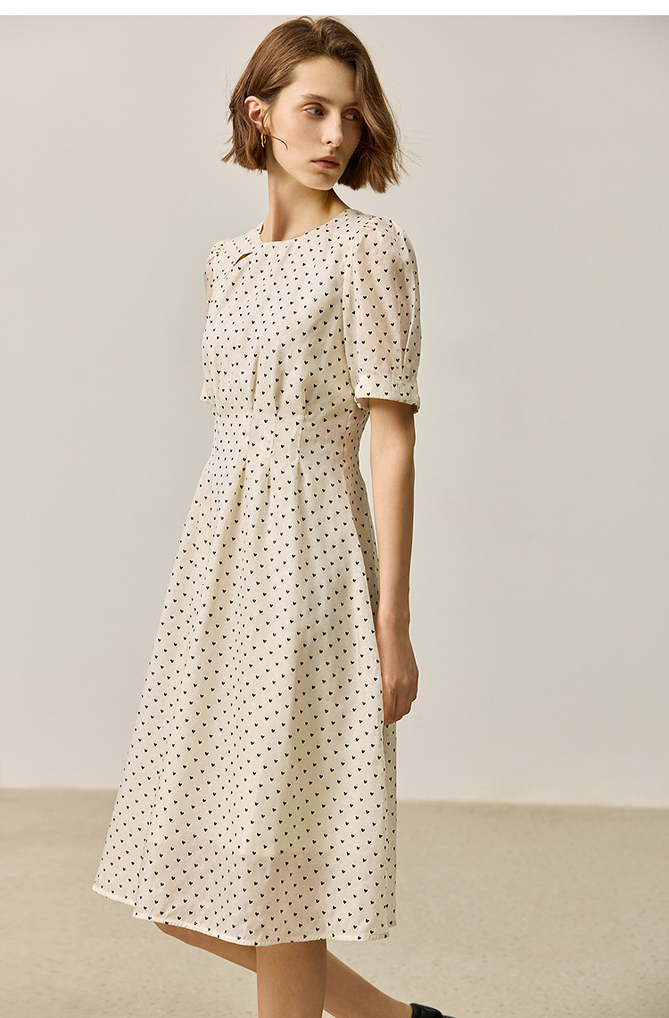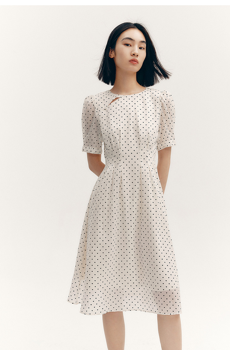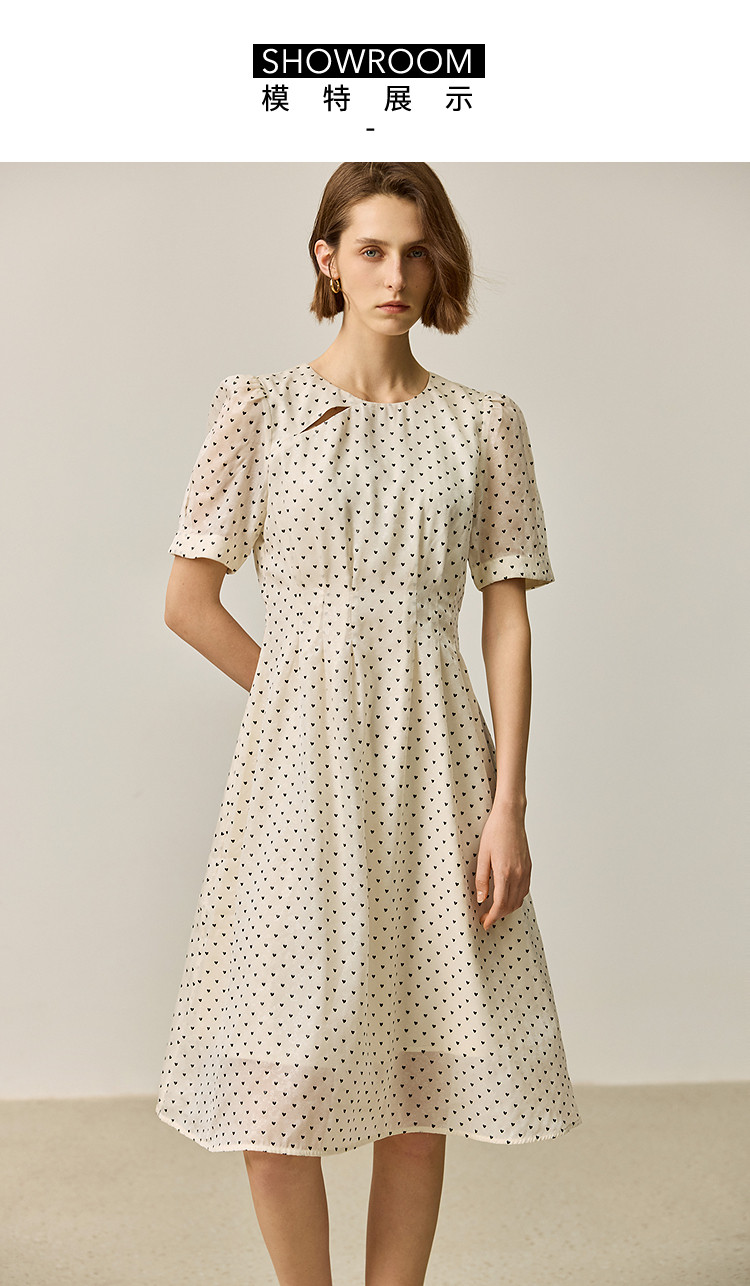 商品名称:【春季款】时尚复古波点气质纯色俏皮短袖显瘦高腰连衣裙 690139