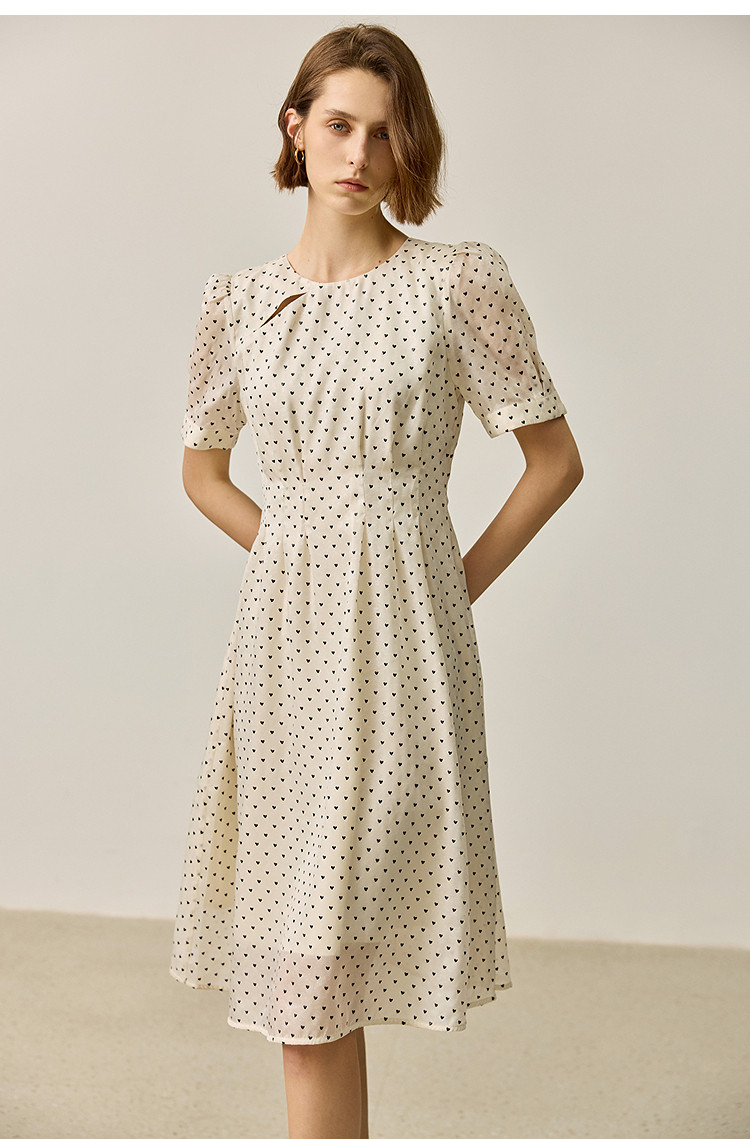 【春季款】时尚复古波点气质纯色俏皮短袖显瘦高腰连衣裙 690139