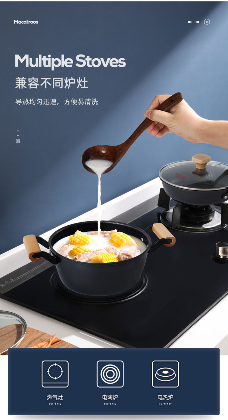 MACAIIROOS/迈卡罗米纹精铁不粘锅具三件套MC-S310A