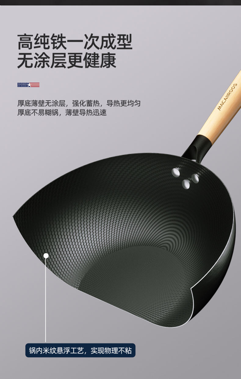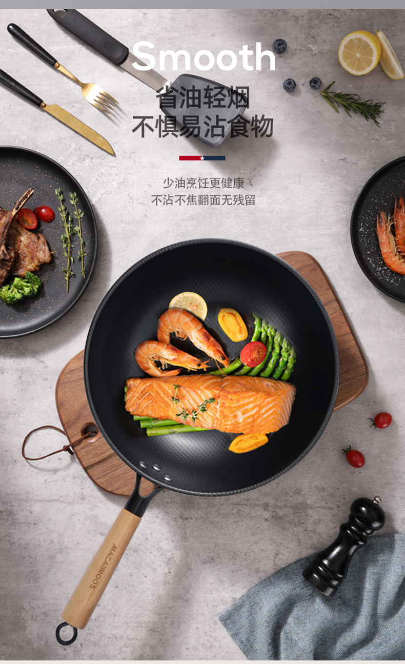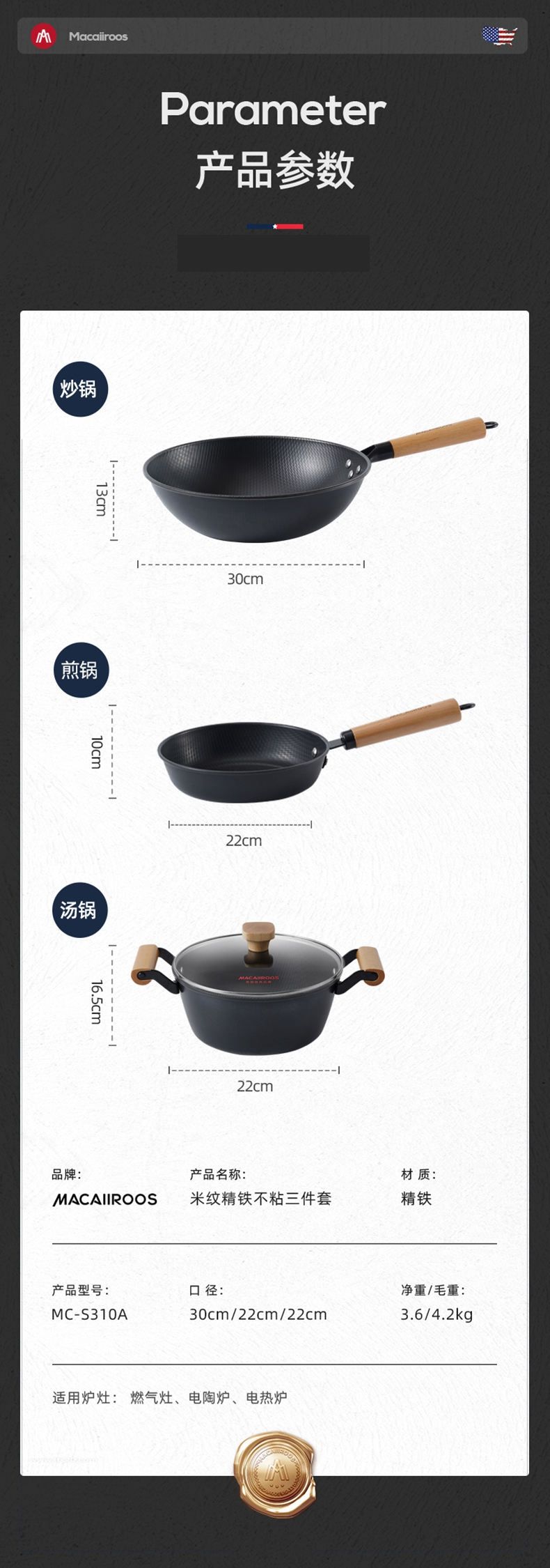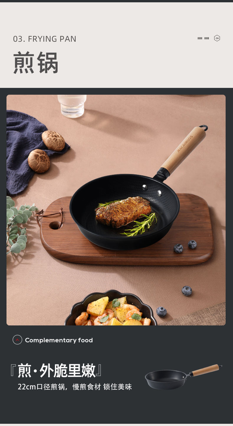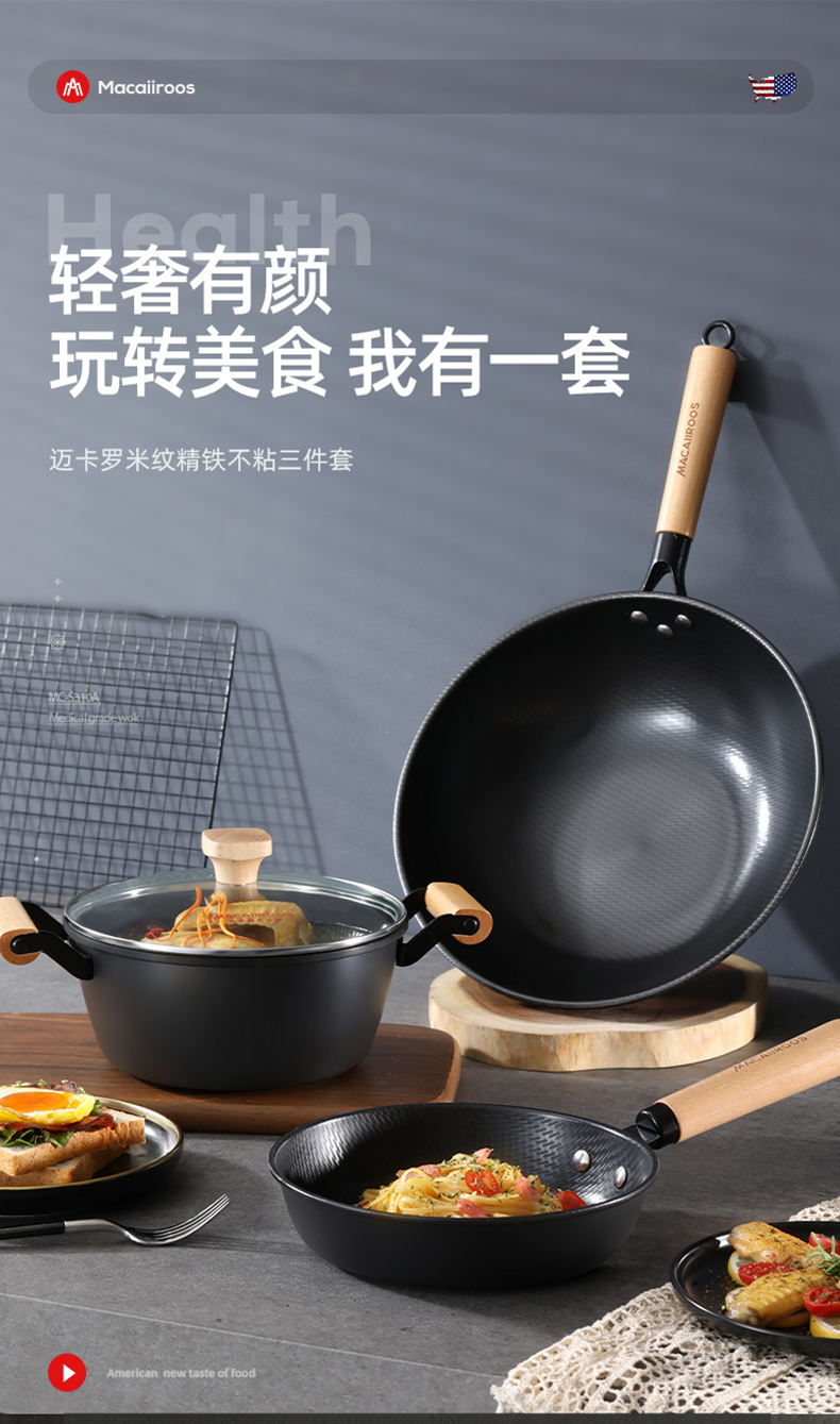 商品名称:MACAIIROOS/迈卡罗米纹精铁不粘锅具三件套MC-S310A
