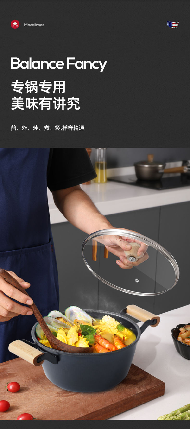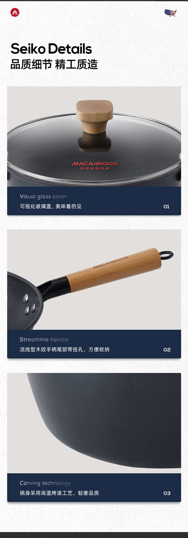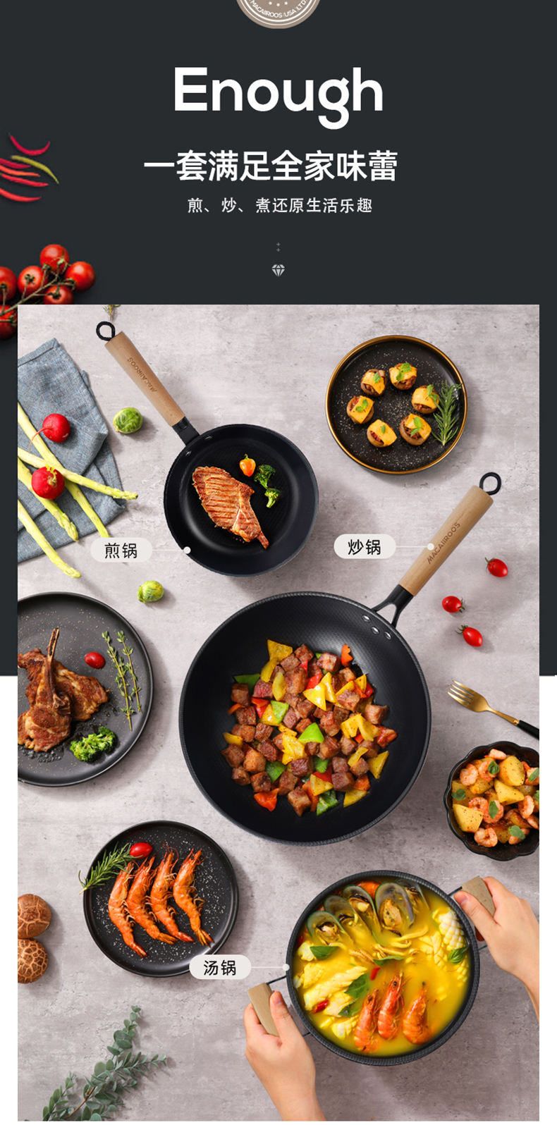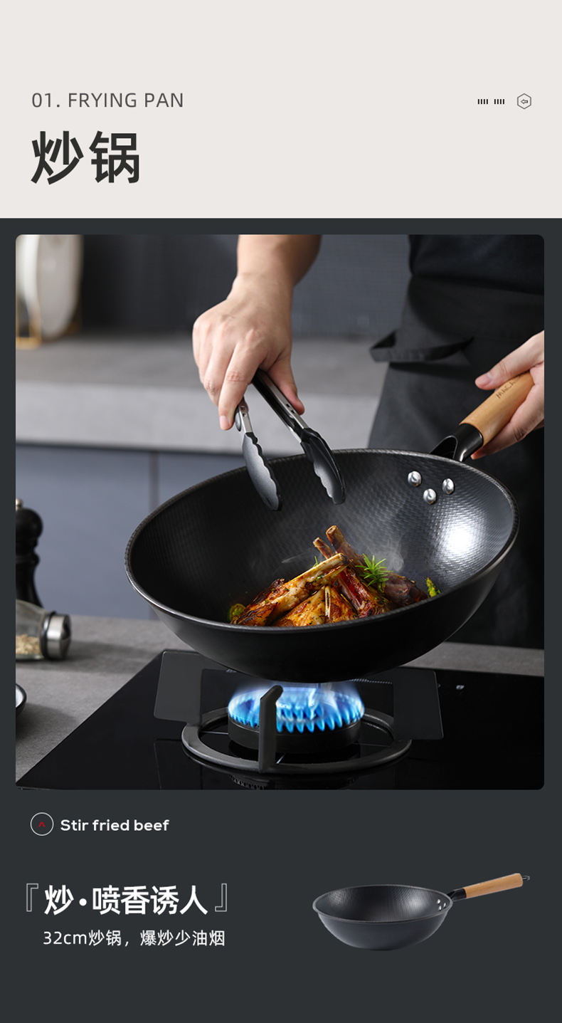 商品名称:MACAIIROOS/迈卡罗米纹精铁不粘锅具三件套MC-S310A