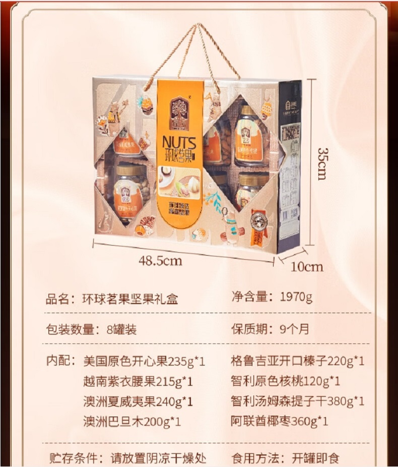 商品名称:【顺丰配送】臻味环球茗果坚果果干礼盒1970g