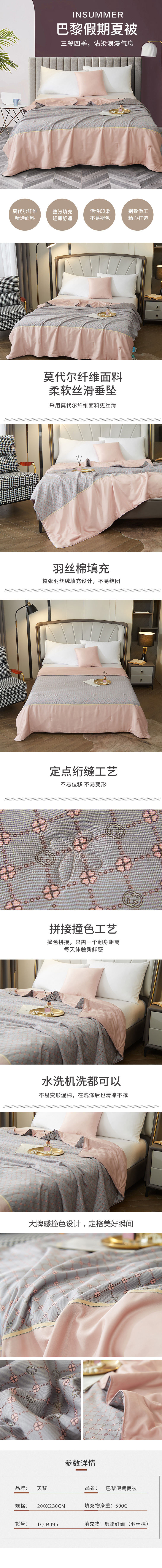 商品名称:TISEN/天琴巴黎假期羽丝棉夏被200*230cm 500g